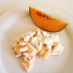 Melonendessert mit Limettensaft, Sultaninen und Cashewkernen
