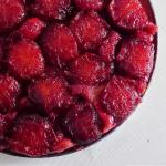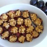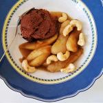 Englisches Dessert mit Kirschen und gerösteten Pinienkernen
