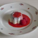 Panna cotta mit Marzipan, Mohn und Himbeersauce