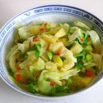 Geschmorter Spitzkohl mit Ingwer und Kartoffeln in Kokosmilch